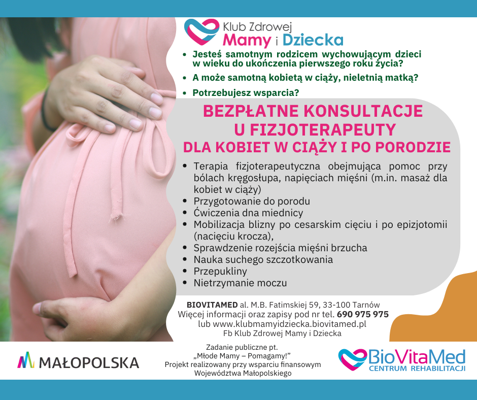 Klub Zdrowej Mamy i Dziecka w BioVitaMed Centrum Rehabilitacji Al. M.B. Fatimskiej 59 w Tarnowie.