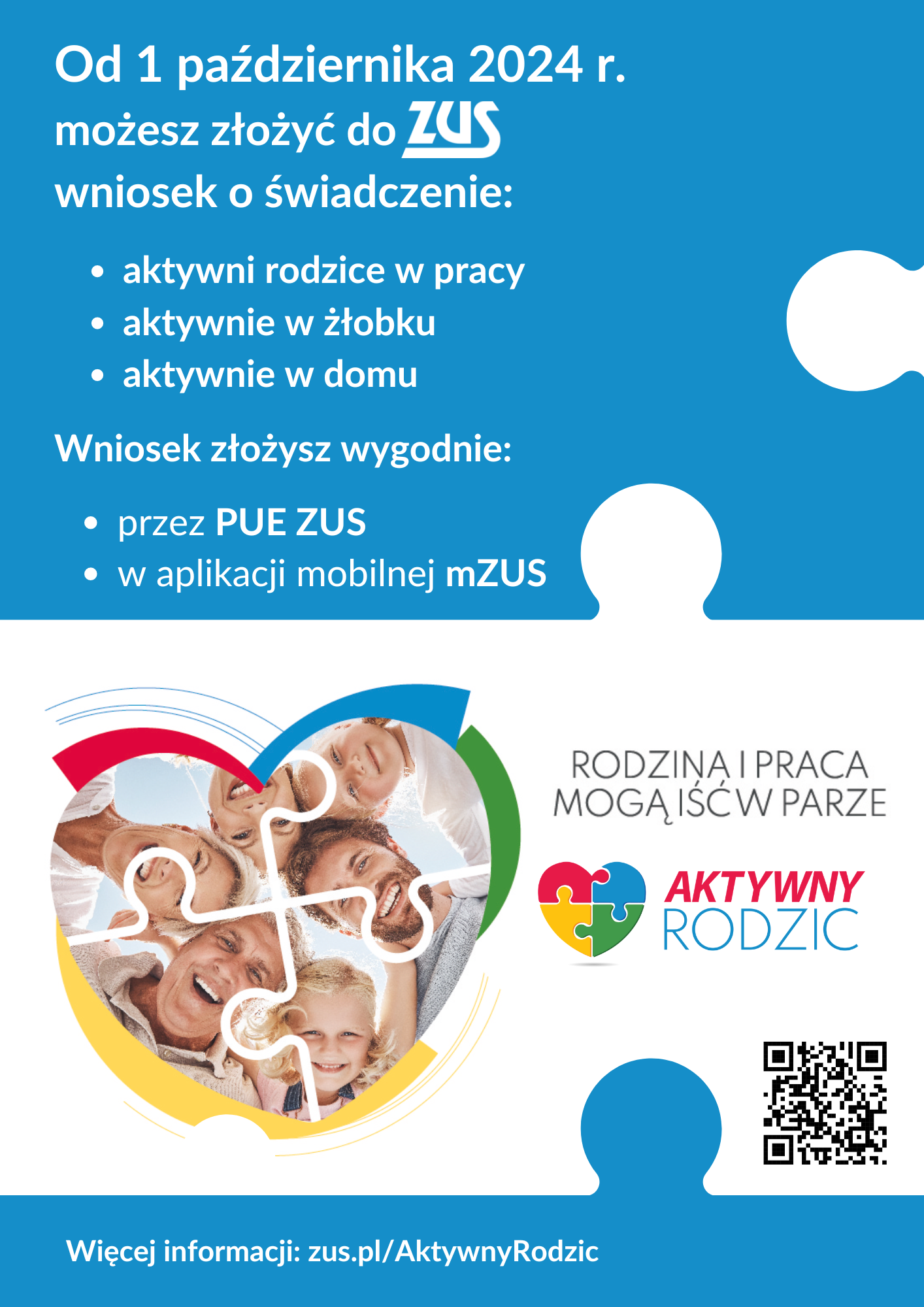 Więcej informacji na temat programu Aktywny Rodzic znajduje się na stronie internetowej: https://www.zus.pl/aktywnyrodzic